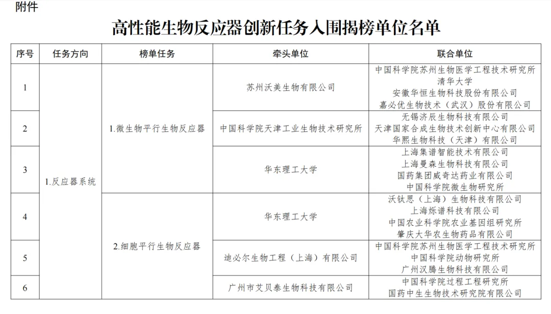 近日,工业和信息化部正式公示了“高性能生物反应器创新任务”揭榜挂帅入围单位名单,安徽华恒生物科技股份有限公司作为联合单位成功入围 “微生物平行生物反应器” 方向任务榜单。